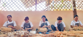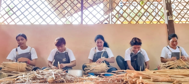 ひとつひとつ思いを込めて編み込まれた水草は、世界に一つの商品へと生まれ変わります。