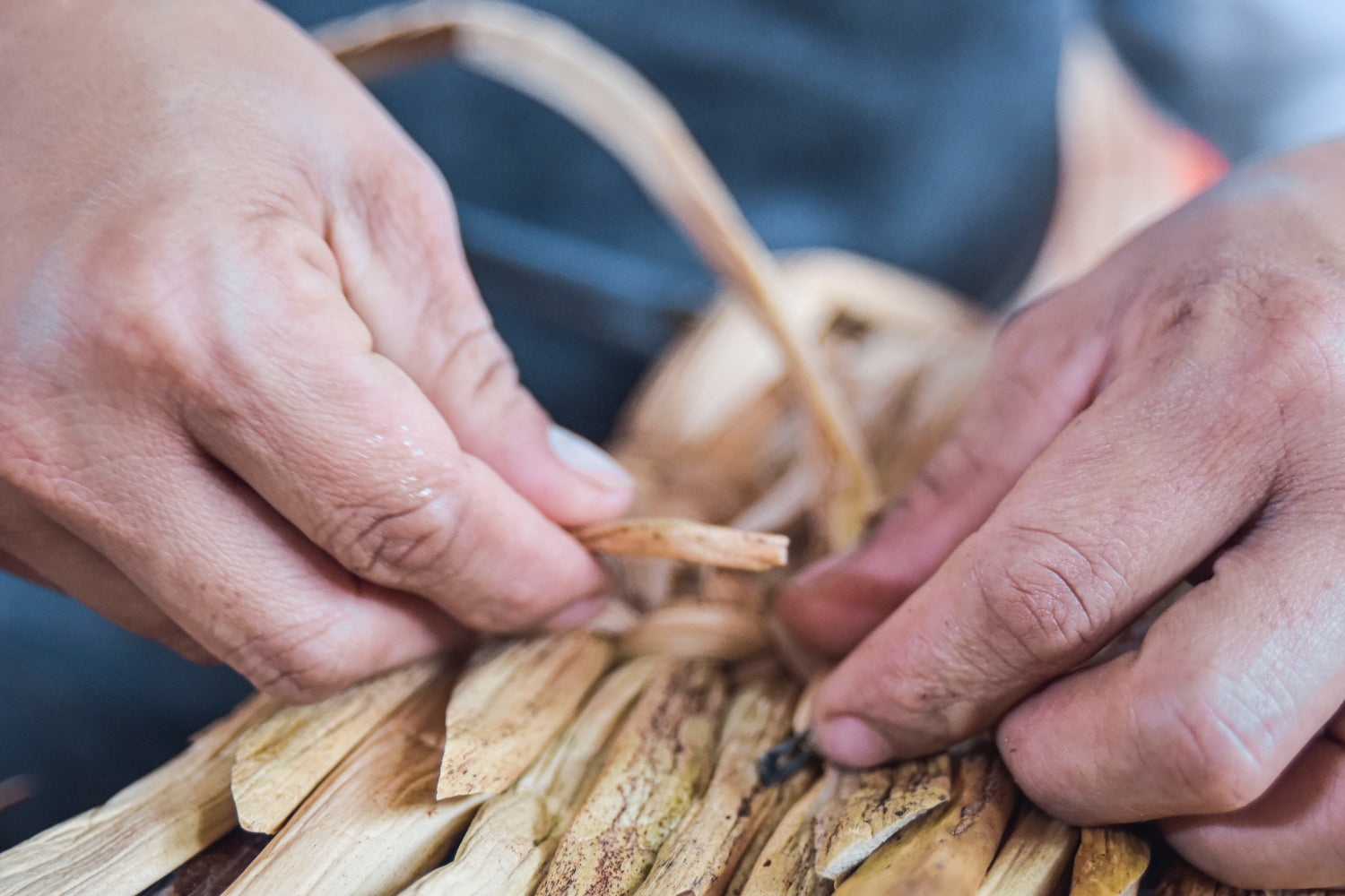 ひとつひとつ思いを込めて編み込まれた水草は、
